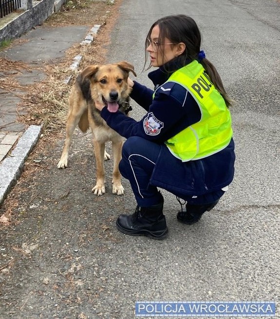 Policjanci Wydziału Ruchu Drogowego Komendy Miejskiej Policji we Wrocławiu, pełniący służbę w dyspozycji Komisariatu Policji w Sobótce, zostali poproszeni o pomoc przez zaniepokojonego kierowcę. Mężczyzna poinformował funkcjonariuszy, że jego pies oddalił się w niekontrolowany sposób i nie potrafi go odnaleźć.