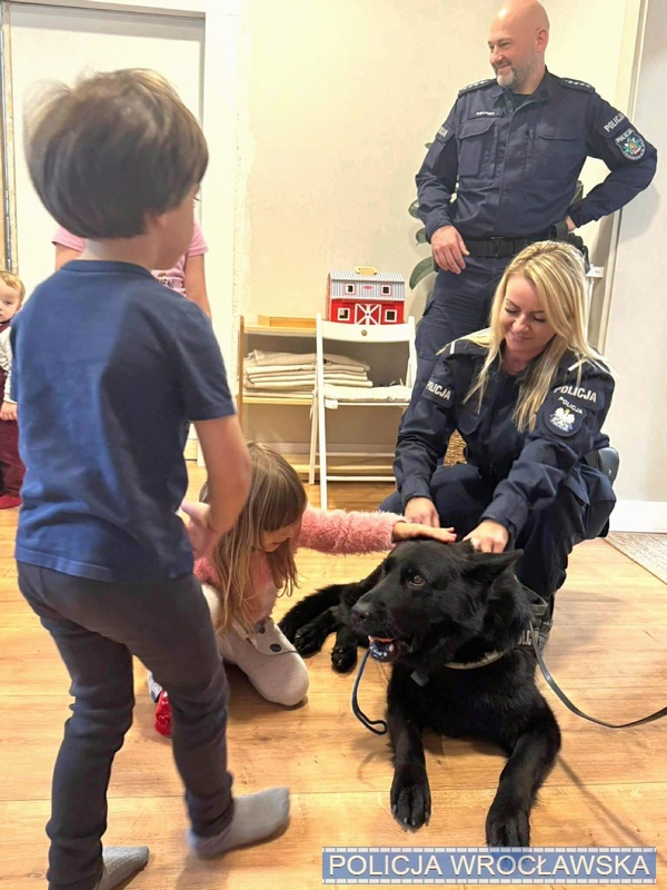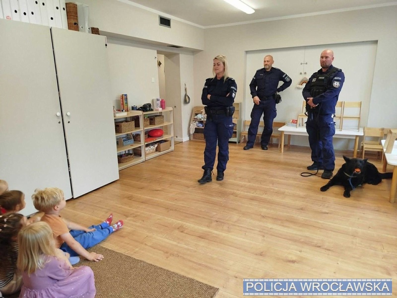 Funkcjonariusze z Komendy Miejskiej Policji we Wrocławiu spotkali się z najmłodszymi w jednym z anglojęzycznych przedszkoli "In Harmony Preschool", którego placówka ma swoją siedzibę na terenie stolicy Dolnego Śląska. Wspólne rozmowy dotyczyły zasad bezpieczeństwa na drodze i zostały przeprowadzone w języku angielskim dla sześćdziesięciu przedszkolaków. Całość dopełnił pies policyjny Koka, który wraz z swoim przewodnikiem pokazał jak zgranym są zespołem i jak wyglądają tajniki ich pracy.