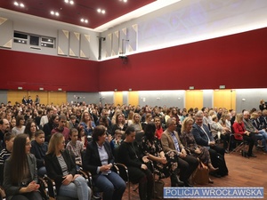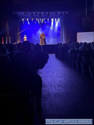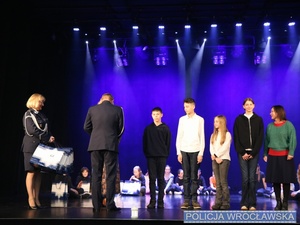 Na koniec Zastępca Komendanta Miejskiego Policji we Wrocławiu mł. insp. Sławomir Kukuś wspólnie z Naczelnik Wydziału Prewencji i Patrolowego Komendy Miejskiej Policji we Wrocławiu podinsp. Joanna Cieciorko wręczyli upominki dla wszystkich wykonawców tego artystycznego dzieła oraz podziękowali im za zaangażowanie. Słowa uznania oraz ogromne brawa otrzymał również współtwórca spektaklu, jego reżyser Pan Łukasz Starzonek.