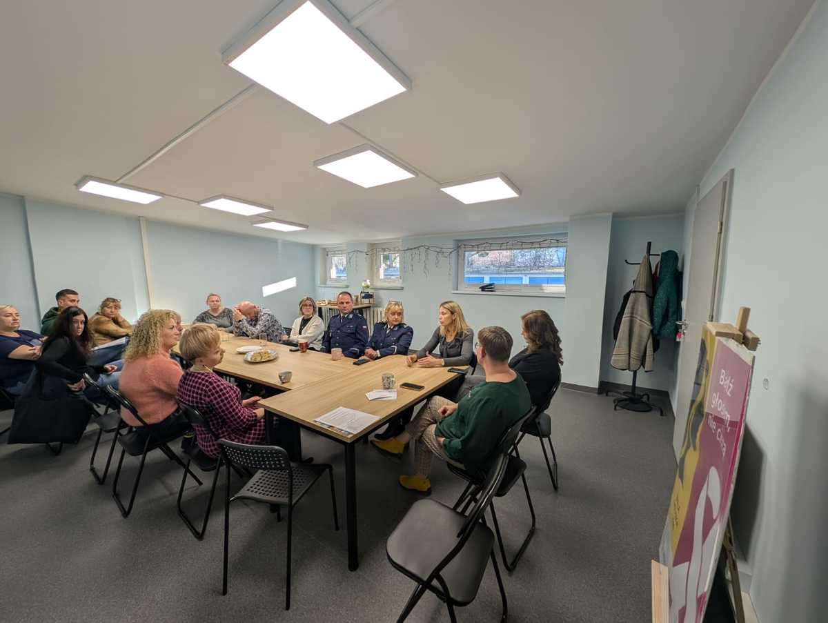 W trakcie spotkania omówiono formy przemocy, sygnały ostrzegawcze, procedury interwencji oraz znaczenie współpracy pomiędzy środowiskiem szkolnym, służbami społecznymi oraz Policją.