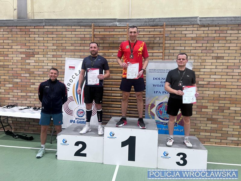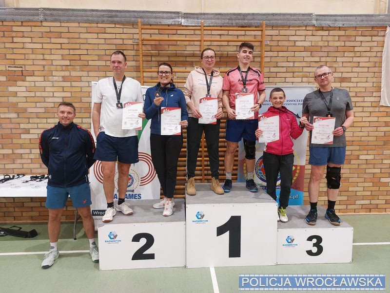 21 grudnia w Jordanowie Śląskim odbyły się XI Mistrzostwa Dolnego Śląska Służb Mundurowych w Badmintonie. W zawodach wzięło udział 40 zawodników formacji mundurowych - Policji, Wojska Polskiego. Straży Pożarnej, Służby Więziennej, Nadleśnictwa i Izby Celno-Skarbowej. Turniej uroczyście otworzyli Przewodniczący IPA Region Wrocław - podinsp. Szymon Fiedorow oraz kom. Łukasz Nowakowski - koordynator zawodów. Uczestnicy rywalizowali w 8 kategoriach, dla każdego czekały nagrody oraz poczęstunek. Świetna sportowa atmosfera towarzyszyła aż do ostatniego meczu. Wrocławscy policjanci zdobyli 3 medale - dwa złote i srebrny !