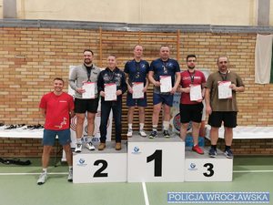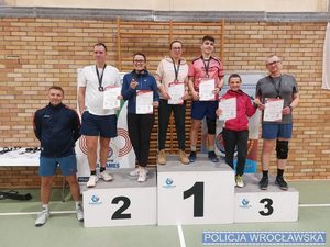 W grze podwójnej tryumfowali - Łukasz Nowakowski - SK KMP Wrocław w parze z Rafałem Krasoń - KP Sobótka. Funkcjonariusz z Sobótki dołożył drugie złoto w grze mieszanej open - w parze z Agatą Pasoń z Wojska Polskiego. Srebrny medal wywalczyli w grze podwójnej amator Michał Burak i Marcin Lech - KWP Wrocław. Gratulujemy uczestnikom i zwycięzcom.