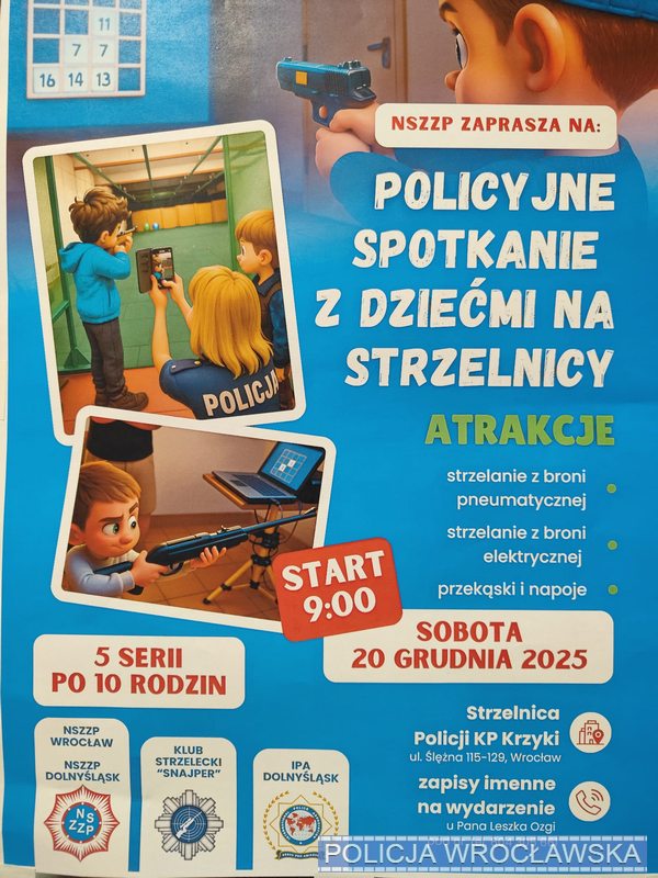 19 grudnia br., na strzelnicy w Komisariacie Policji Wrocław-Krzyki odbyło się przedświąteczne spotkanie z udziałem dzieci. Impreza zorganizowana była przy udziale policjantów z tamtejszej jednostki, Klubu Strzeleckiego Policjantów "Snajper", Zarządu Terenowego NSZZ Policjantów KMP we Wrocławiu oraz IPA Region Wrocław. W trakcie spotkania dzieci wraz z rodzicami sprawdzali swoje możliwości podczas strzelania z broni pneumatycznej i laserowej.