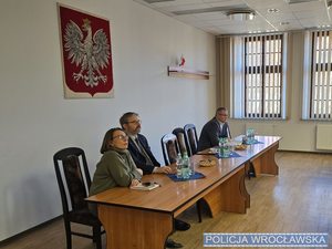 W siedzibie Komendy Miejskiej Policji we Wrocławiu odbyło się spotkanie z Prokuratorem Okręgowym Danielem Drapałą oraz jego zastępczynią Joanną Staroń. W wydarzeniu uczestniczyli Komendant Miejski Policji we Wrocławiu insp. Rafał Siczek, jego zastępca młodszy inspektor Sławomir Kukuś, komendanci podległych komisariatów oraz prokuratorzy rejonowi.