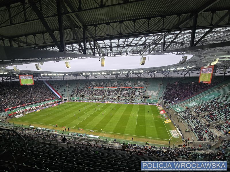 W niedzielę o godz. 14:30 na Stadionie Miejskim Tarczyński Arena policjanci zabezpieczali mecz piłki nożnej pomiędzy drużynami WKS Śląsk Wrocław a Odrą Opole. Spotkanie zostało zakwalifikowane jako impreza masowa o podwyższonym ryzyku. Nad bezpieczeństwem uczestników czuwali funkcjonariusze z Wrocławia oraz z innych miast Dolnego Śląska. W trakcie meczu zatrzymano 5 osób, przy których pracownicy ochrony ujawnili race i flary. Za wnoszenie na teren imprezy masowej materiałów pirotechnicznych grozi im kara pozbawienia wolności do 5 lat.