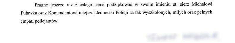 Podziękowanie dla policjanta z komisariatu na wrocławskich Krzykach